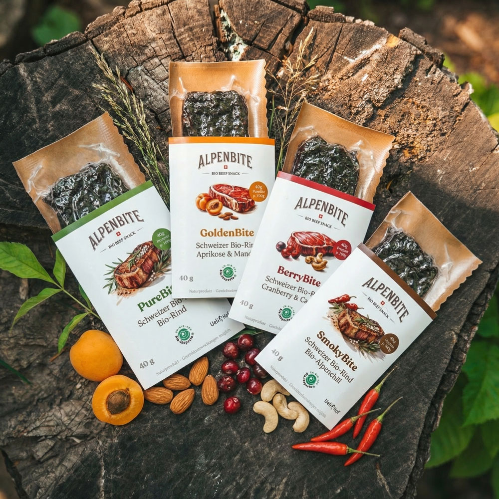 Lange Tage, wenig Zeit für Essen, aber trotzdem keine Kompromisse bei der Qualität? ALPENBITE – der Schweizer Bio-Fleischriegel – ist dein idealer Begleiter für den hektischen Alltag.