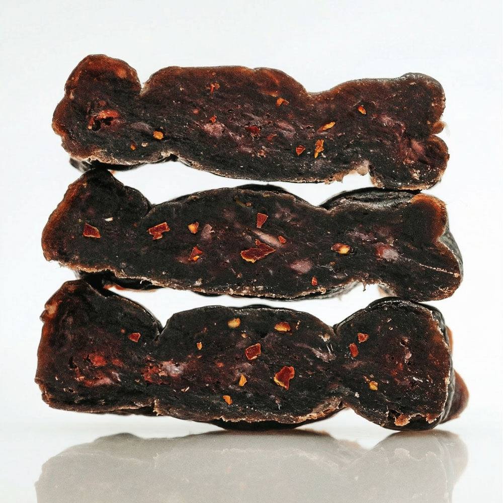 Für alle, die den reinen Fleischgenuss lieben und eine pikante Note schätzen – ganz ohne unnötige Zusätze. Bestehend aus Schweizer Bio-Rindfleisch, feurig abgestimmt mit Bio-Alpenchili und veredelt durch eine feine Rauchnote – mehr nicht.
